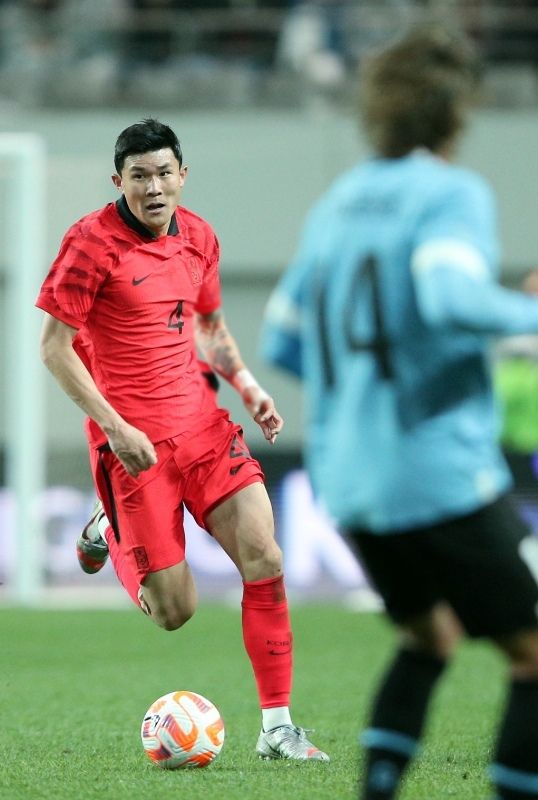 이탈리아 프로축구 나폴리에서 뛰고 있는 대한민국 축구 국가대표 김민재. 사진은 지난 3월 서울월드컵경기장에서 열린 축구 국가대표 평가전 대한민국과 우루과이의 경기 당시 모습 / 뉴스1