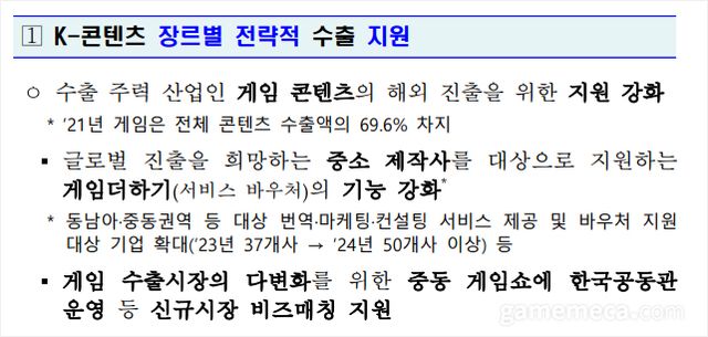 ▲ 중소 게임사 대상 수출지원 강화 세부 내용 (자료제공: 문화체육관광부)