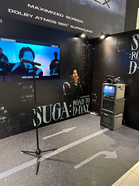 이어서 슈가 부스는 그의 다큐멘터리 타이틀에서 영감을 받은 도로 테마로 조성됐다. 부스 정면으로는 독특한 그래픽이 돋보이는 강렬한 비주얼 속 눈을 감은 채 노래를 부르는 슈가의 모습이 담겨 눈길을 사로잡는다.