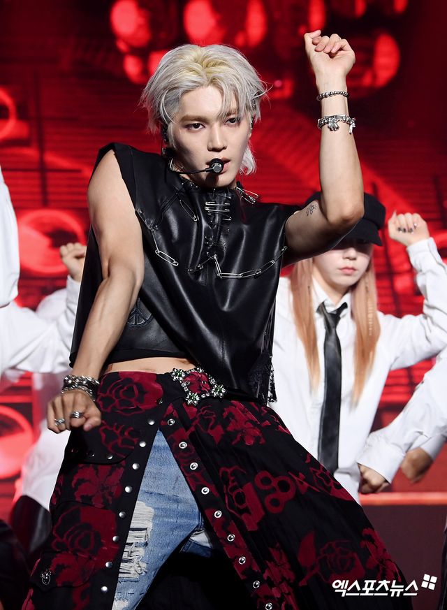 가수 태용이 타이틀곡 '샤랄라' 무대를 펼치고 있다.