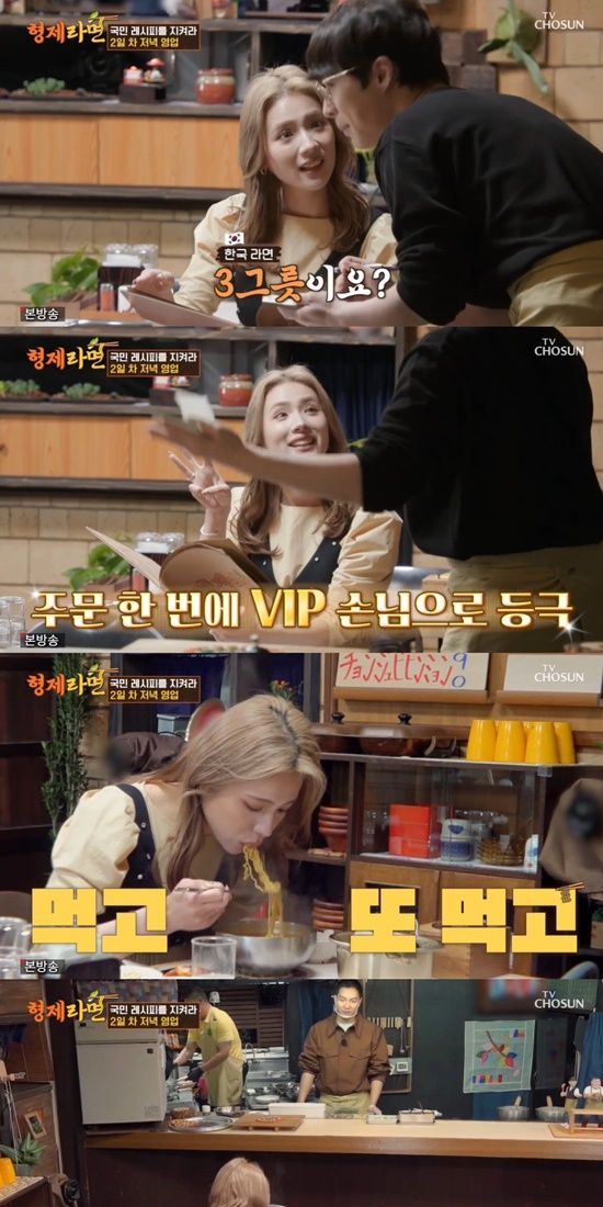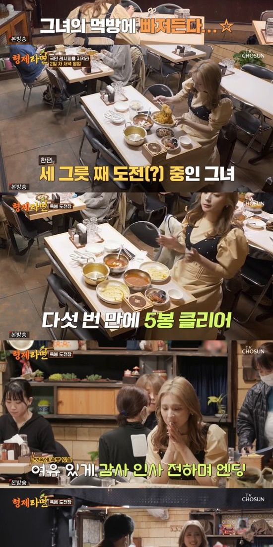 저녁 영업을 이어가던 중 한 여성 손님이 홀로 방문했다. 해당 손님은 앉은 자리에서 전주비빔면, 갈비카레라면, 동해물라면을 각각 하나씩, 총 세 그릇을 주문해 시선을 끌었다.