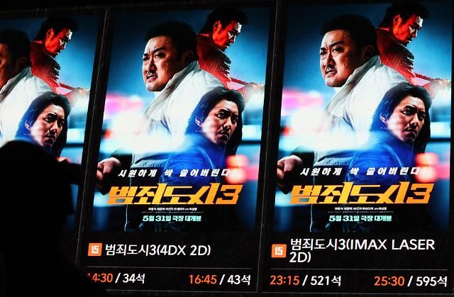 首尔一家电影院内的《犯罪都市3》上映场次时间表。【图片提供 韩联社】