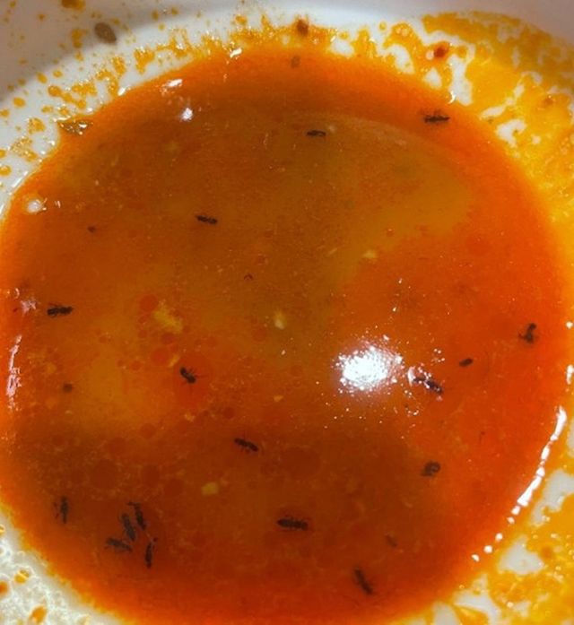 사진 속에는 벌레로 추정되는 이물질이 국물 위에 둥둥 떠 있는 모습이 담겼다.