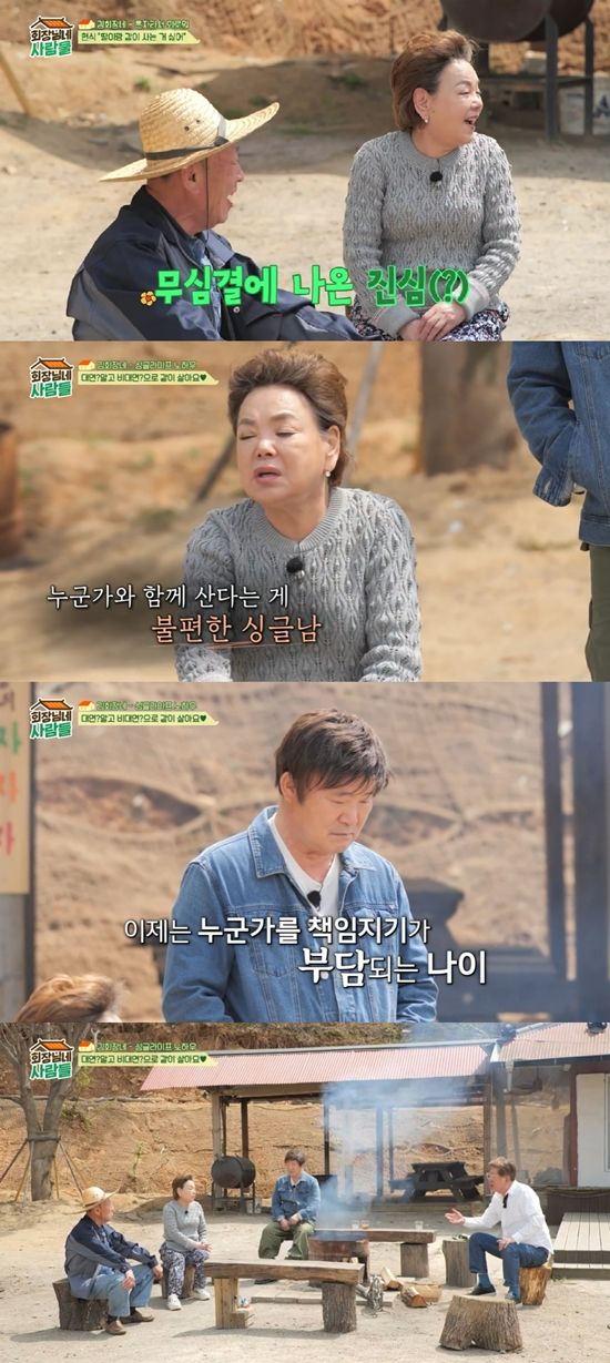 이어 김용건은 "나이 들어서 누구를 만난다는 게 쉽지가 않다. 물론 노력은 해야 하지만, 이 나이에 상대방 기분 맞춰주는 게 자신이 없는 거다"라고 이야기했다.