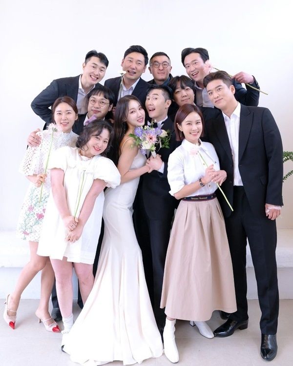 박나래, 김지민, 송병철, 이승윤, 김기열, 권재관 등 이상호와 동기인 이들은 환한 미소로 두 사람을 축복했다. 또 다정한 포즈를 취하고 있는 커플 뒤로 들러리를 서며 유쾌한 분위기를 풍겼다.
