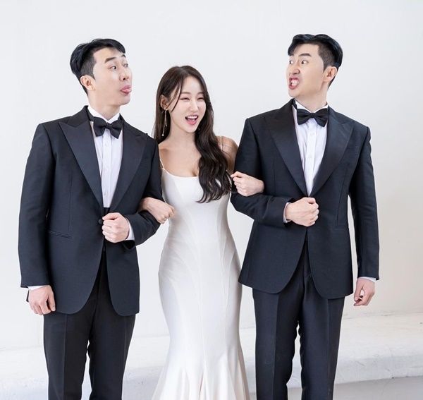 공개된 사진에는 이상호, 김자연의 웨딩 화보에 깜짝 등장한 KBS 21기 개그맨들이 담겼다.