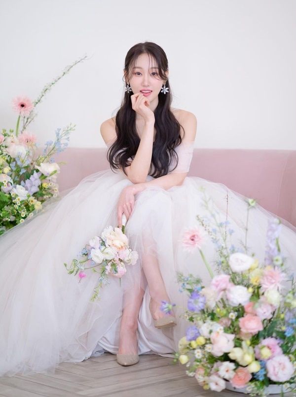 웨딩드레스를 입고 포즈를 취하고 있는 김자연