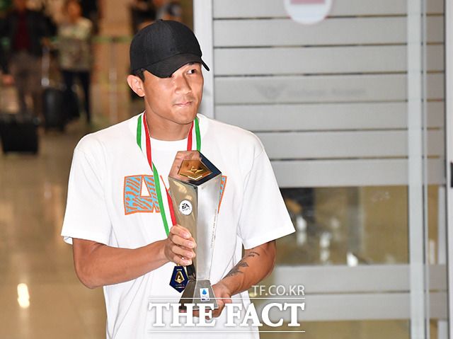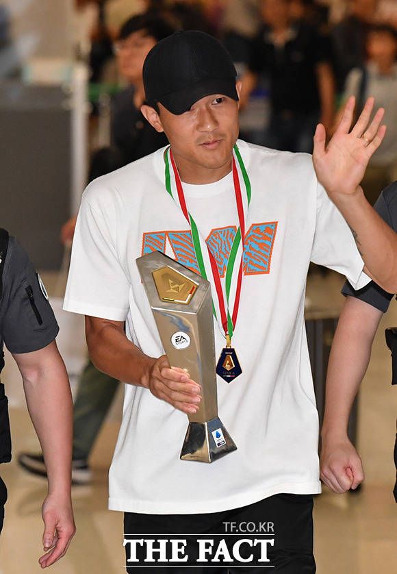[더팩트ㅣ인천국제공항=박헌우 기자] 이탈리아 프로축구 세리에A에서 최고 수비수로 우뚝 선 SSC 나폴리의 김민재가 6일 오후 인천국제공항을 통해 귀국하고 있다.