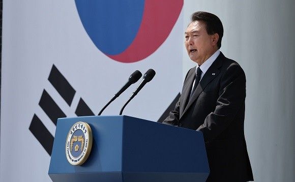 윤석열 대통령이 6일 제68회 현충일 추념식에서 추념사를 하고 있다. ⓒ 연합뉴스