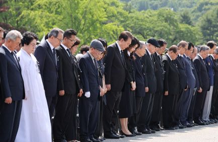 윤 대통령은 “아직도 수많은 국군 전사자 유해는 가족의 품으로 돌아가지 못하고 있다”며 “정부는 호국영웅들께서 가족의 품으로 돌아갈 수 있도록 끝까지 노력할 것이다. 국외에서 독립운동을 하다 순국하신 선열들의 유해를 모셔오기 위한 노력도 계속할 것”이라고 힘주어 말했다.