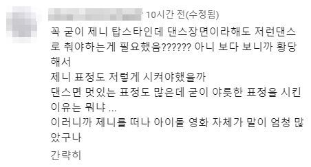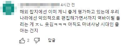 ▲해외에서도 반응 갈린다곤 하는데, 우리나라에선 악의적으로 편집해가면서 역바이럴 돌리는 게 진심 답 없음. 아직도 마녀사냥 시대인 줄 아는 건지. ▲애들 진짜 이상하네..? 제니가 저걸 하고 싶어서 했냐. 감독이 시켜서 한 거라고 이미 기사 죄다 떴는데.