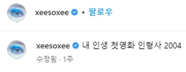 직접 인스타그램 피드에 영화 '인형사' 스틸컷을 올린 한소희 / 한소희 인스타그램