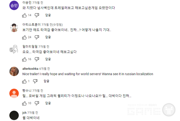 트레일러 영상을 보고 "트레일러 보고 해보고 싶은 게임 오랜만이다", "보기만해도 타격감 좋아보인다","모바일 게임 그래픽 퀄리티가 이정도나 나오나요?" 등 트레일러 영상에 대한 이용자들의 반응이 기대감을 나타내고 있다.