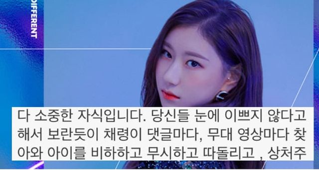 그는 "채령이에게 상처 줄 수 있는 말을 너무 쉽게들 하시네요. 이제 갓 데뷔한 아이입니다. 나에게는 누구보다 소중한 자식입니다"라고 말문을 열었습니다. 그러면서 "당신들 눈에 예쁘지 않다고 해서 보란 듯이 댓글마다, 무대 영상마다 찾아와 아이를 비하하고 무시하고 따돌리고 상처 주는 말을 서슴없이 하네요"라며 채령을 향한 악성 댓글에 안타까움을 드러냈습니다.
