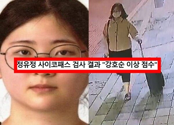 나이는 23살인 정유정이 사이코패스 진단 검사에서 '연쇄살인마' 강호순보다 높게 나온 것으로 알려졌다.