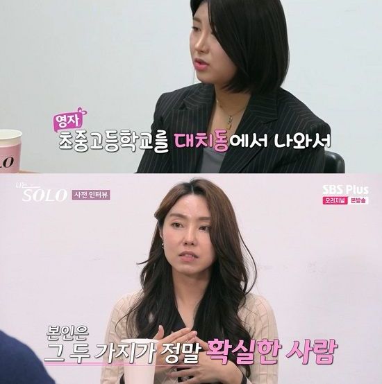 영자는 직업이 영어 강사라며 "초등학교와 중고등학교를 대치동에서 나왔다. 영문학과를 갔더니 선생님들이 자연스럽게 조교로 불러주시더라"며 반전 매력을 과시했다. 순자는 "20대부터 결혼을 빨리 해 서른 안에 애를 낳는 게 목표였다"며 가정을 꾸리는 욕심을 드러내 눈길을 끌었다.