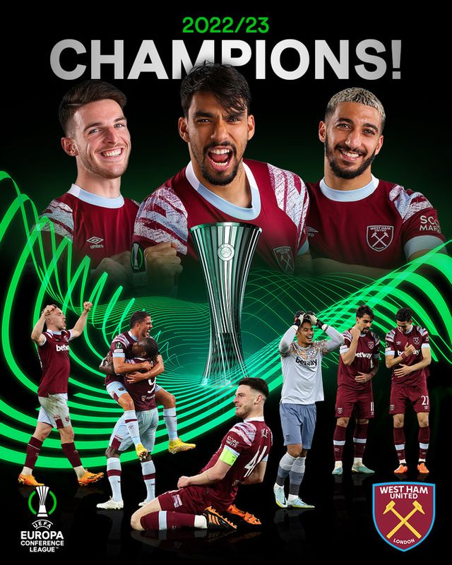 웨스트햄 유나이티드는 8일 오전 4시(한국시간) 체코 프라하에 위치한 에덴 아레나에서 열린 2022-23시즌 유럽축구연맹(UEFA) 유로파 컨퍼런스리그(UECL) 결승전에서 피오렌티나를 2-1로 제압했다. 이로써 웨스트햄은 UECL 우승 트로피를 들어 올렸다.
