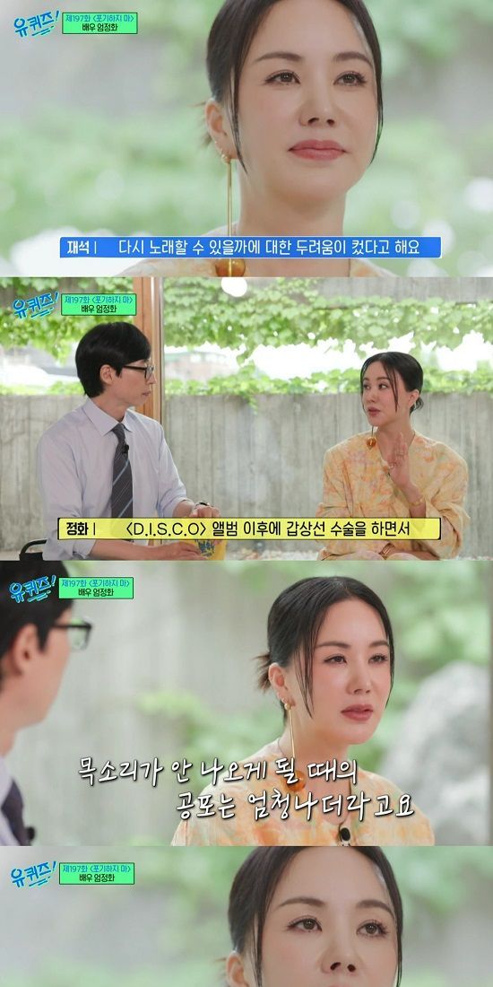 (엑스포츠뉴스 이예진 기자) '유퀴즈' 엄정화가 갑상선 암 수술 이후 힘들었던 당시를 떠올렸다.