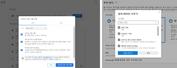 |인터넷 방문 기록 및 '쿠키' 삭제