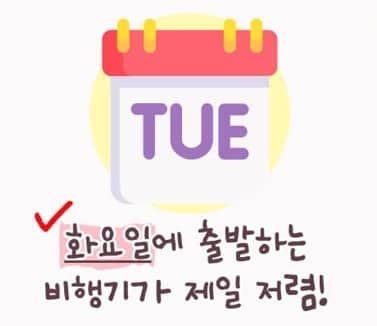비행기표는 화요일에 출발하는 항공권이 국내, 국제선을 통틀어 세계 평균적으로 가장 저렴합니다. 따라서 평일에 여행을 떠날 수 있다면 화요일에 떠나는 것을 추천드립니다.
