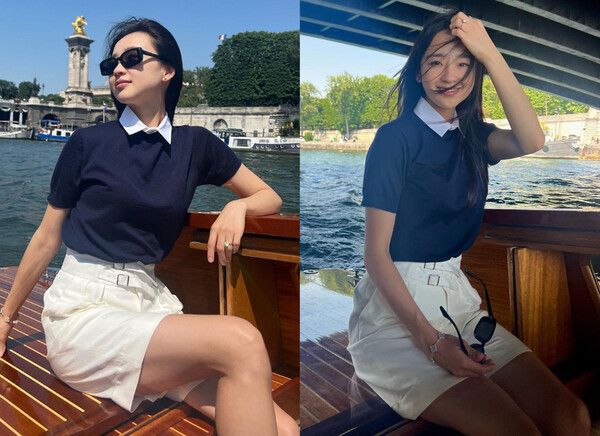 공개된 사진 속 손연재는 파리 센 강에서 보트를 타고 로맨틱한 데이트를 즐기는 모습이다. 그녀는 단정한 차림으로 살짝 미소 지어 새댁다운 청순한 매력을 뽐냈다.