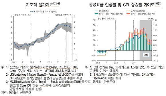 [아이뉴스24 이효정 기자] 한국은행은 "그동안 지연된 공공요금 인상이 현실화하면 직·간접 경로를 통해 오랜 기간에 걸쳐 인플레이션을 높이는 요인으로 작용할 전망"이라고 밝혔다.