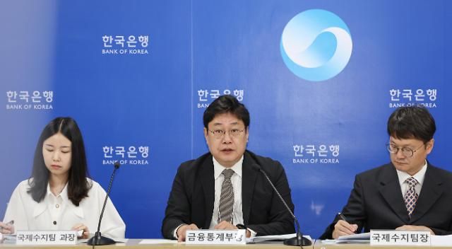9日,在位于首尔中区的韩国央行总行,央行负责人发布国际收支经常项目统计。【图片提供 韩联社】