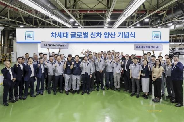 GM한국사업장 관계자들이 지난 8일 부평공장에서 쉐보레 트랙스 크로스오버 파생 모델 뷰익 엔비스타 양산 기념식을 가졌다. [사진=GM한국사업장]