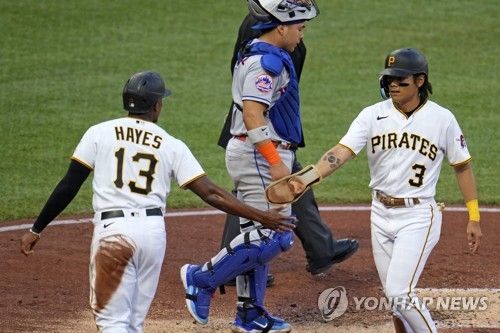 배지환은 첫 타석부터 자신의 존재감을 알렸다. 팀이 0-1로 지고 있던 2회말 1사 1루에서 메츠 선발 타일러 메길을 상대로 볼넷을 얻어냈다. 이후 배지환은 키브라이언 헤이즈와 더블 스틸까지 성공하면서 시즌 19호 도루를 달성했고, 2사 2·3루에서 오스틴 헤지스의 2루타 때 홈을 밟아 2-1 역전을 만들었다.