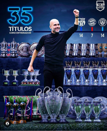 맨시티에선 전세계에서 경쟁이 가장 거센 리그라는 평가에도 불구하고 7시즌 중 5시즌을 프리미어리그 우승으로 이끌어 '1강 체제'를 만들었다. FA컵 2회, 리그컵 4회 등 컵대회에서도 강했는데 11일 인터 밀란전 승리로 맨시티 부임 뒤 유독 인연이 없었던 챔피언스리그마저 들어올리는 위업을 달성했다.