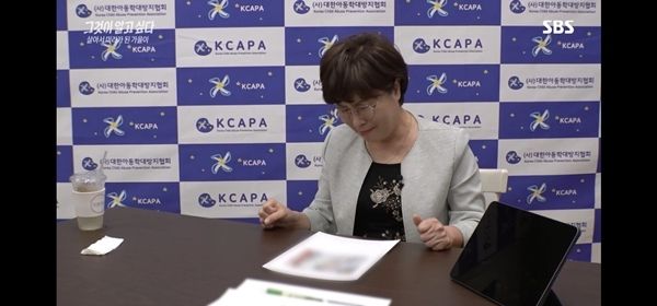 이하 가을이 사진을 보고 충격과 분노에 눈물을 흘리는 공혜정 대한아동학대방지협회 대표
