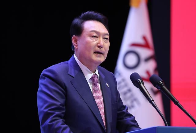 本月9日,韩国总统尹锡悦出席在江原道春川市江原大学举行的江原特别自治道成立纪念仪式。【图片提供 韩联社】