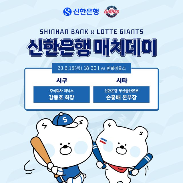 롯데는 신한은행과 함께 이번 매치데이를 맞아 신한은행 임직원 및 초청고객 400여명을 초대해 승리를 기원하는 응원전을 펼친다. 또, 경기 전 시구행사에는 주식회사 이닉스 강동호 회장과 신한은행 부산울산본부 손홍배 본부장이 각각 시구와 시타를 선보일 예정이다.
