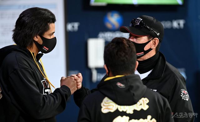 KT 이강철 감독(오른쪽), 쿠에바스. 스포츠동아DB