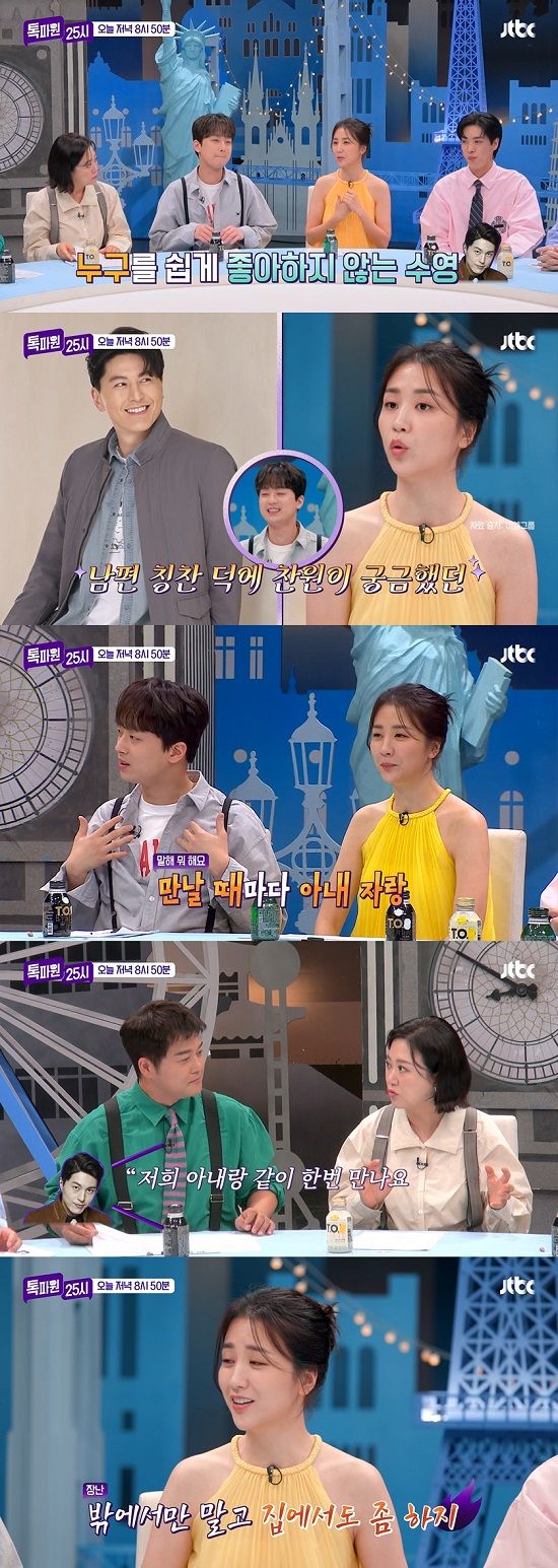 '카메라 돌 때만 이야기하는 거 아니냐'는 전현무의 의심에 김숙은 "류수영이 저와도 친분이 있다. 그런데 류수영이 저에게도 박하선과 한 번 같이 보자고 한다. 너무 괜찮다고 칭찬한다"고 거들었다.
