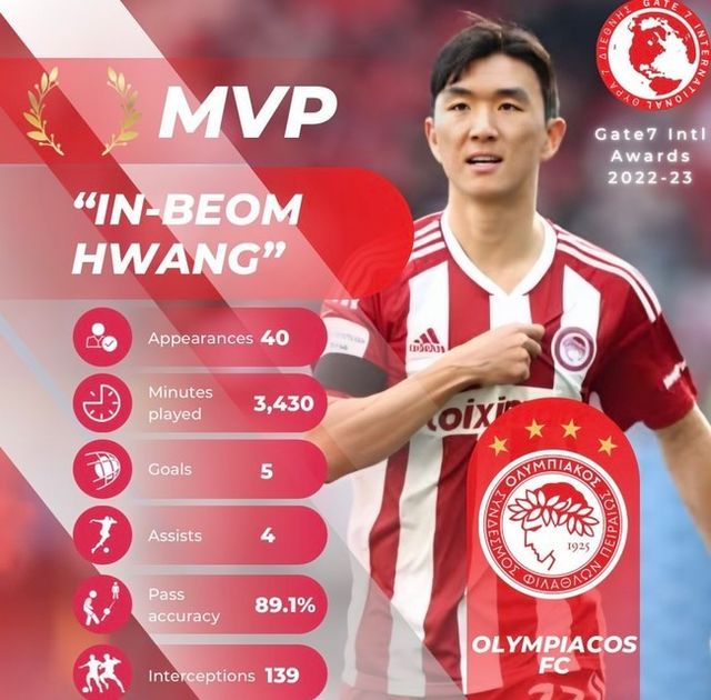 황인범은 불과 한 시즌 만에 그리스 최고 명문 클럽을 매료시켰다. 올림피아코스 전문 매체 '게이트 7 인터내셔널'은 "전 세계 올림피아코스 팬들이 2022-23시즌 MVP로 황인범을 뽑았다. 어려운 시즌에도 그라운드 안팎에서 솔선수범하며 빛났다. 다음 시즌 황인범에게 더 많은 기대가 집중된다"라며 찬사를 보내기도 했다.