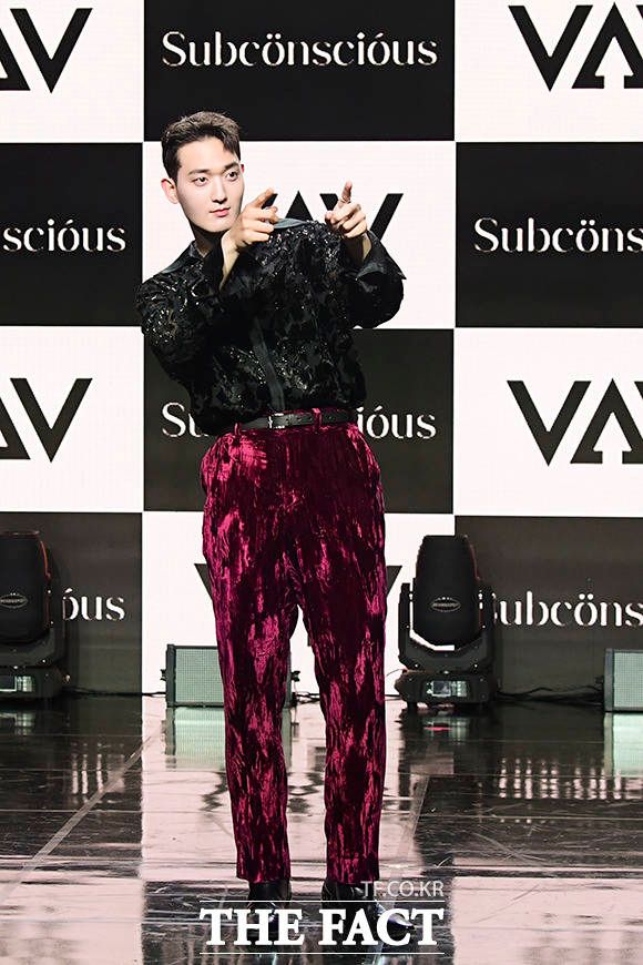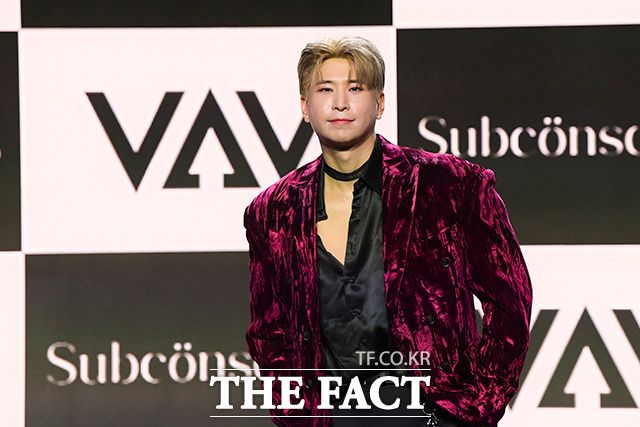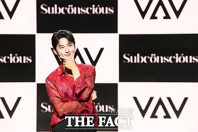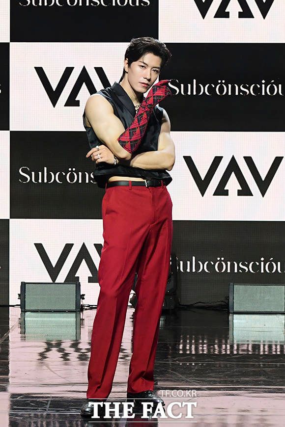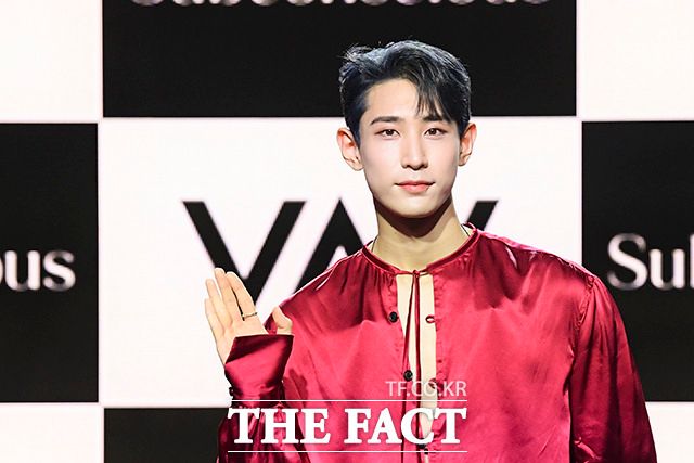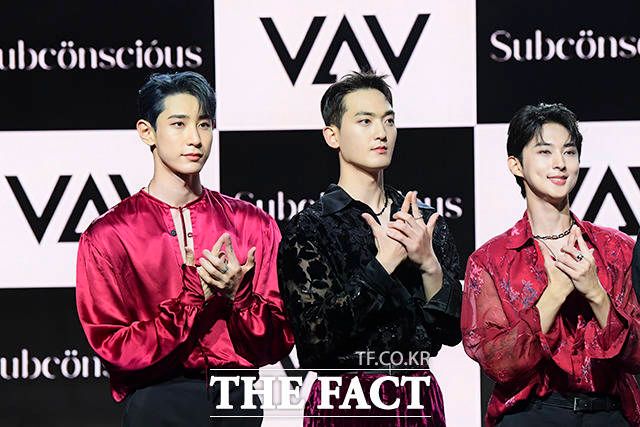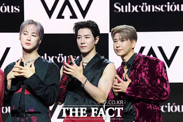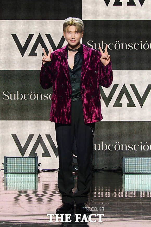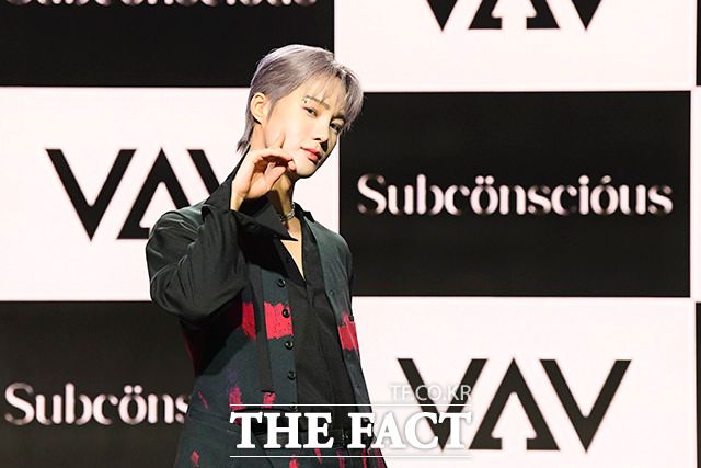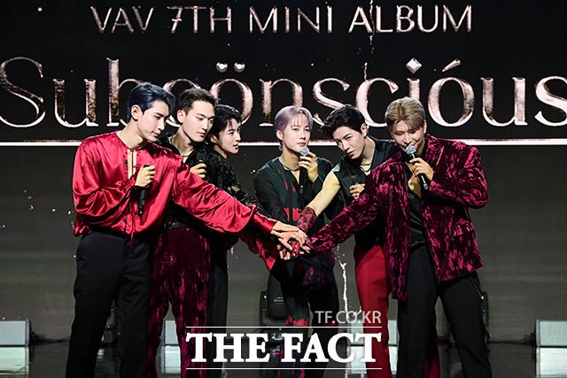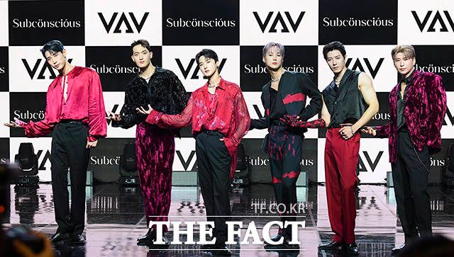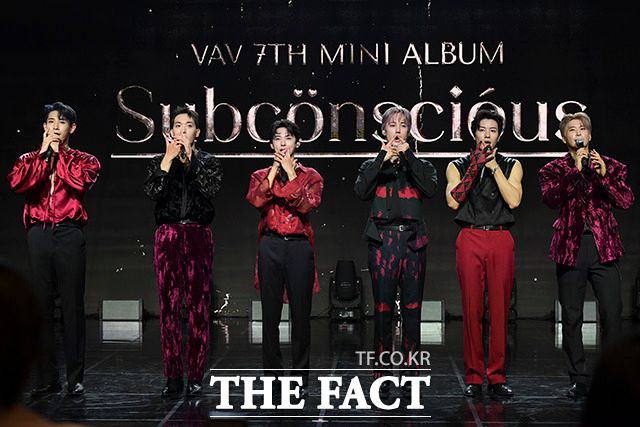 [더팩트ㅣ서예원 인턴기자] VAV(브이에이브이) 로우와 지우, 에이스, 에이노, 제이콥, 세인트반(왼쪽부터)이 12일 오후 서울 강남구 일지아트홀에서 열린 미니 7집 'Subconscious(서브칸셔스)' 쇼케이스에 참석해 포즈를 취하고 있다.