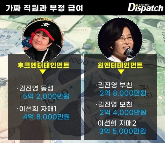지난달 26일 디스패치는 "이선희가 후크 소속 연예인 및 연습생의 보컬 트레이닝 및 교육을 맡아 10년간 43억 원을 받았다"며 "그 중 일부를 권 대표에게 보냈다"고 보도, 이선희와 권진영 대표가 '경제공동체' 아니냐는 의혹을 제기했다.