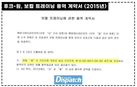 디스패치는 이선희가 후크로부터 매월 5,000만 원 가량을 자문료(보컬 트레이닝) 명목으로 받았고, 8년간 받은 금액은 총 43억에 이른다고 주장했다.