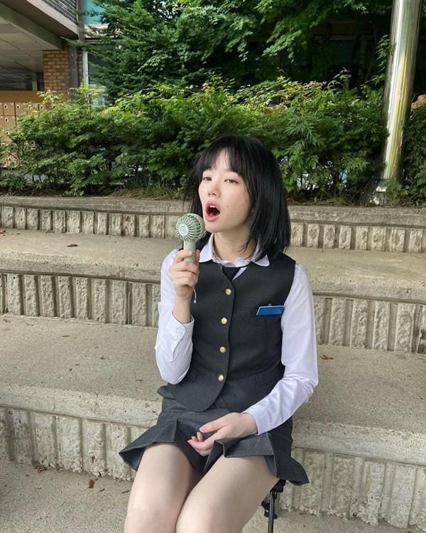 이유비가 교복을 입고 동안 미모를 뽐내고 있다.