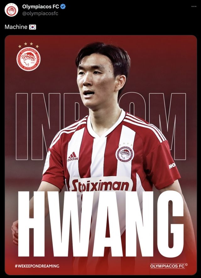 그만큼 수많은 팬들의 사랑을 받고 있다. 올림피아코스는 11일 공식 SNS를 통해 황인범을 위해 제작한 그래픽을 공개했다. “기계(Machine)”라는 코멘트와 함께 펄럭이는 태극기는 덤이었다. 올림피아코스의 팬들도 이 게시글에 무수한 댓글로 황인범의 잔류를 염원했다.