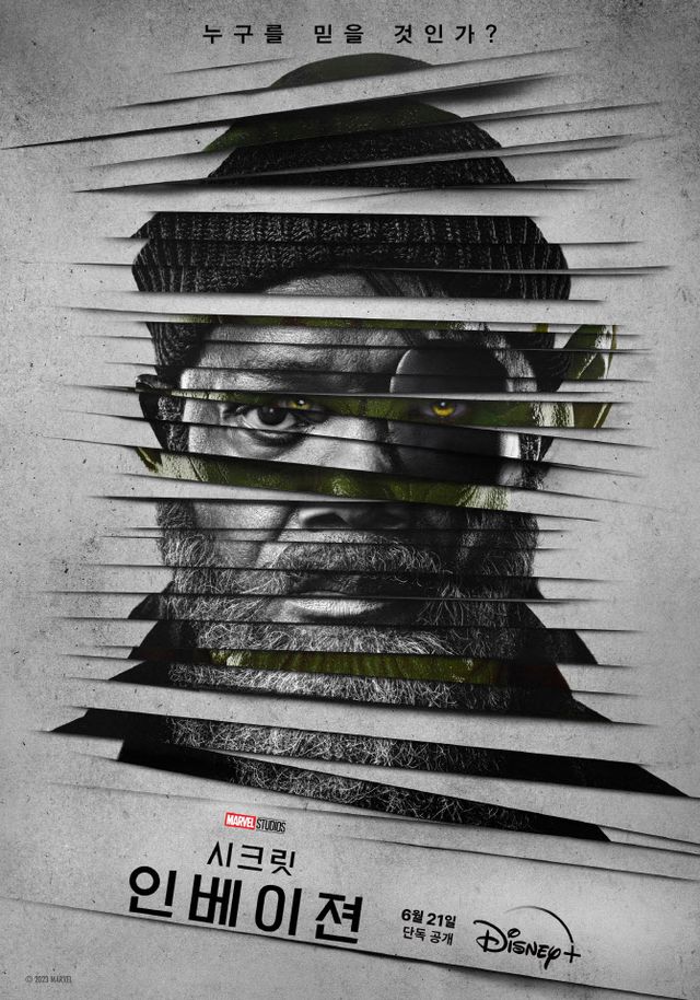 디즈니+ 마블 오리지널 시리즈 ‘시크릿 인베이젼’은 엔드게임 이후 지명 수배 1순위가 된 어벤져스의 설계자 ‘닉 퓨리’가 접촉 없이도 원하는 인간의 모습으로 변신할 수 있는 특별한 능력의 외계 종족 ‘스크럴’에 맞서며 시작되는 기밀 작전을 그린 작품이다. ‘시크릿 인베이젼’은 오는 21일 오직 디즈니+에서 만나볼 수 있다.