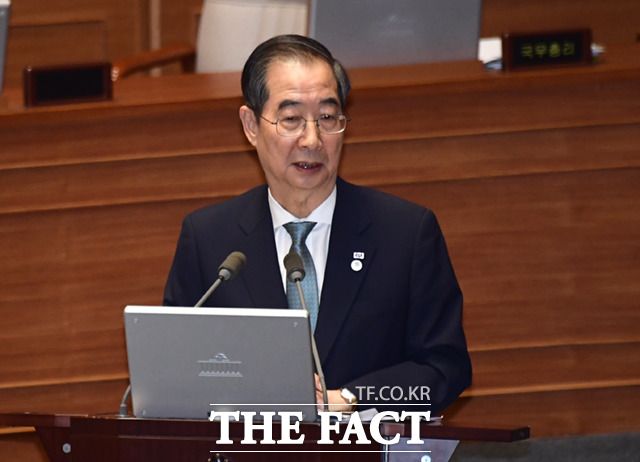한덕수 국무총리가 13일 오후 서울 여의도 국회에서 열린 경제 분야 대정부질문에서 의원들 질의에 답하고 있다. /국회=이새롬 기자