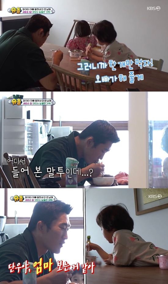 (엑스포츠뉴스 장인영 기자) '슈돌' 김동현이 아내의 말투를 완벽히 따라하는 아들 단우에게 놀랐다.