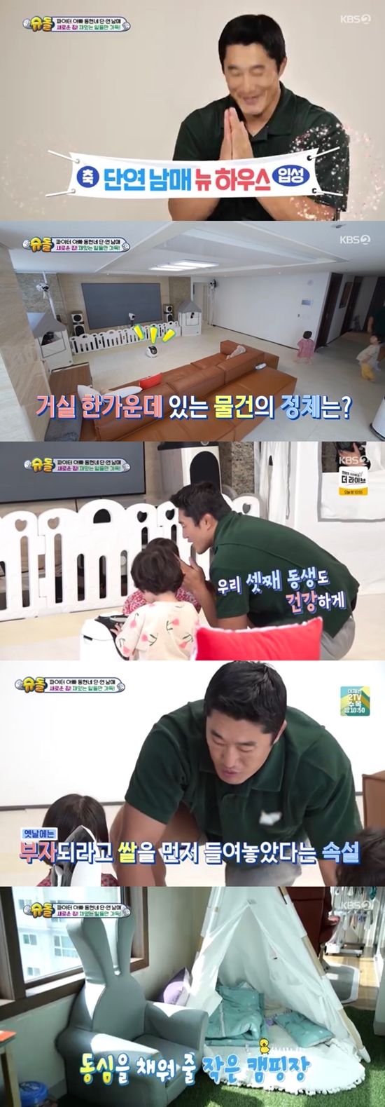 새 집 또한 공개됐다. 현관을 지나자 단연 남매가 맘껏 뛰어놀아도 걱정 없는 넓은 거실은 물론, 채광이 환하게 들어오는 남매의 방이 눈길을 끌었다. 또한 방 안의 발코니로 들어가자, 남매만의 아늑한 아지트가 있었다.