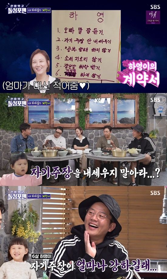 하영의 계약서에는 '자기 주장을 안 내세우기'가 있었는데. 장윤정은 "주도적이고 좋은데 막무가내로 떼를 쓸 때가 있다. 분명 오빠 장난감인데 자기 거라고 우긴다. 연우가 말로 이길 수가 없다"고 말했다.