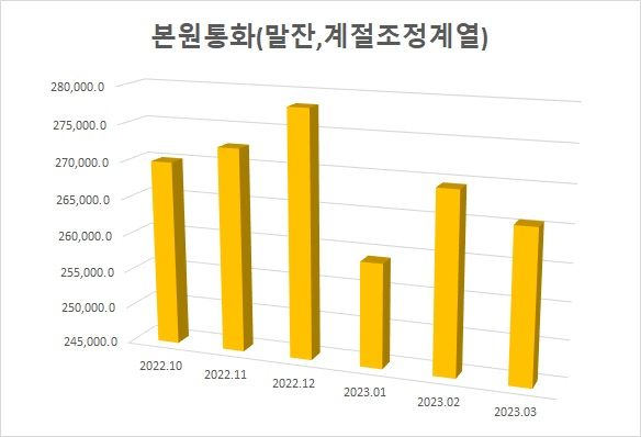 실제 KOSIS 국가통계포털을 보면, 작년 10월 269조9000억 원이던 본원통화(말잔, 계절조정계열)량은 11월 272조5000억 원, 12월 278조3000억 원으로 증가했다.