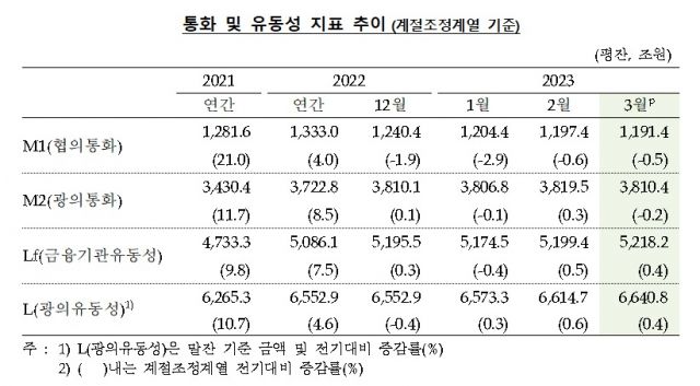 하지만 레고랜드 사태 이전과 비교해도 이미 이 시기 통화량 증가분은 적잖았다. 올해 1월 현재 시중 통화량(M2)은 3803조4000억 원이다. 기준금리 인상이 본격화한 2021년 8월의 3494조4000억 원에 비해 309조 원 증가했다. 이를 단순히 레고랜드 사태 대응의 결과로 볼 수는 없다. 지난해 12월 통화량 역시 3810조1000억 원에 이르렀다.