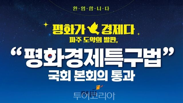 ‘평화경제특구법’ 국회 통과로 파주시는 이제 군사도시 이미지를 벗고 한반도 평화의 깃발을 드높이며, 통일과 번영의 중심지로 발돋움할 채비를 마쳤다.