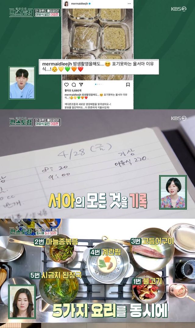 순식간에 '만능 간장'을 사용한 불고기, 마늘종볶음부터 육수까지 우려 만든 계란찜과 시금치 된장국, 고등어 구이까지 만들어냈다. 클래스가 다른 이정현의 요리 수완에 김보민은 "시간이 없어서 밥을 못해준다는 말을 못하겠네"라며 혀를 내둘렀다.